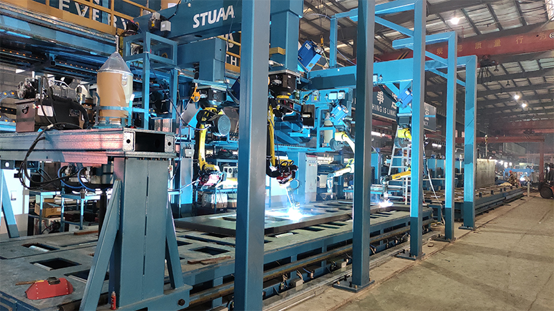 车厢板/底板自动焊接线,具有参数化快速编程功能,无需人工示教器示教,只需要人机界面上输入关键参数即刻自动生成程序。整线自动物流,不同型号的自动换型生产,做到了整个焊接过程的自动化、信息化、智能化。